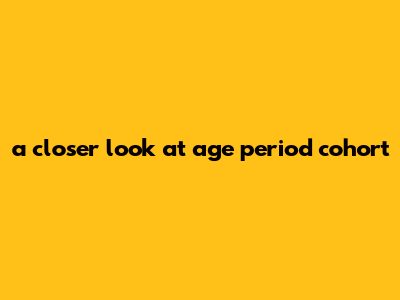 A Closer Look At Age Period Cohort