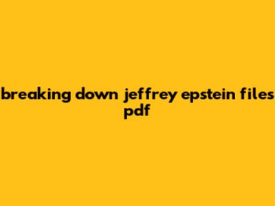 Breaking Down Jeffrey Epstein Files Pdf