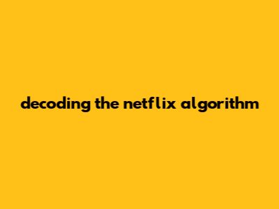 Decoding the Netflix Algorithm