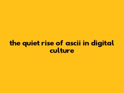 ASCII has become more than text. It’s a subtle language of identity. Key facts: