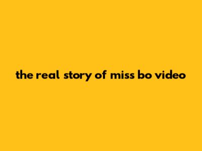 The Real Story Of Miss Bo Video