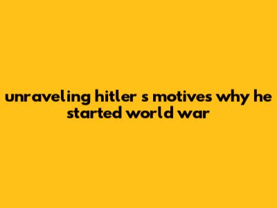 Unraveling Hitler's Motives: Why He Started World War II